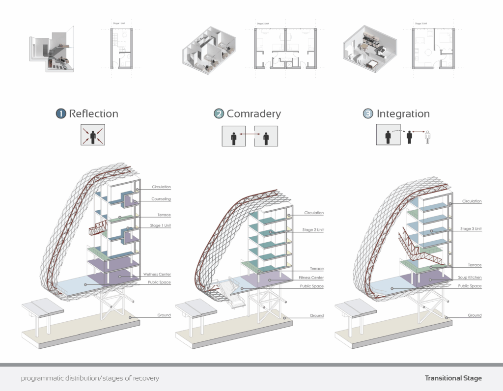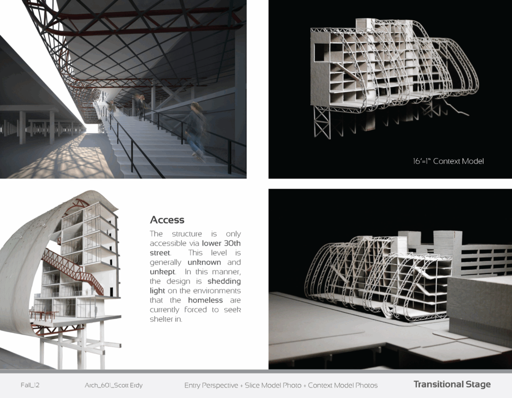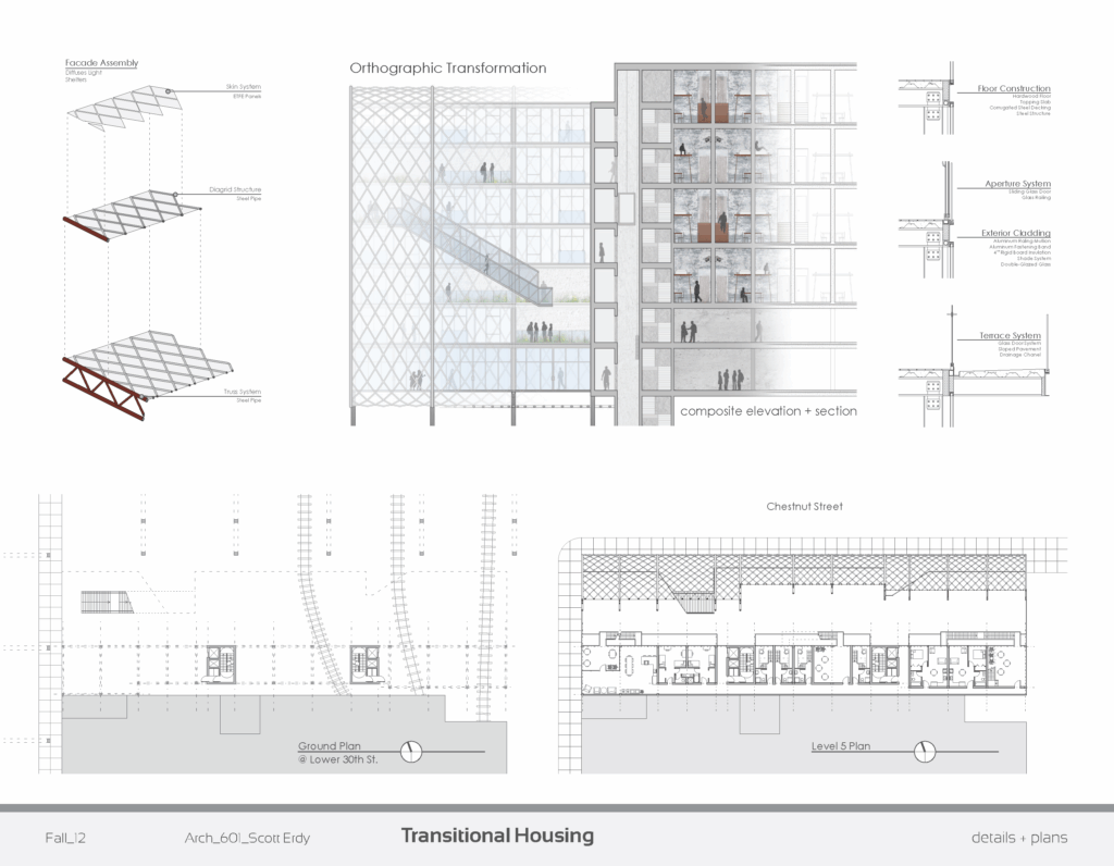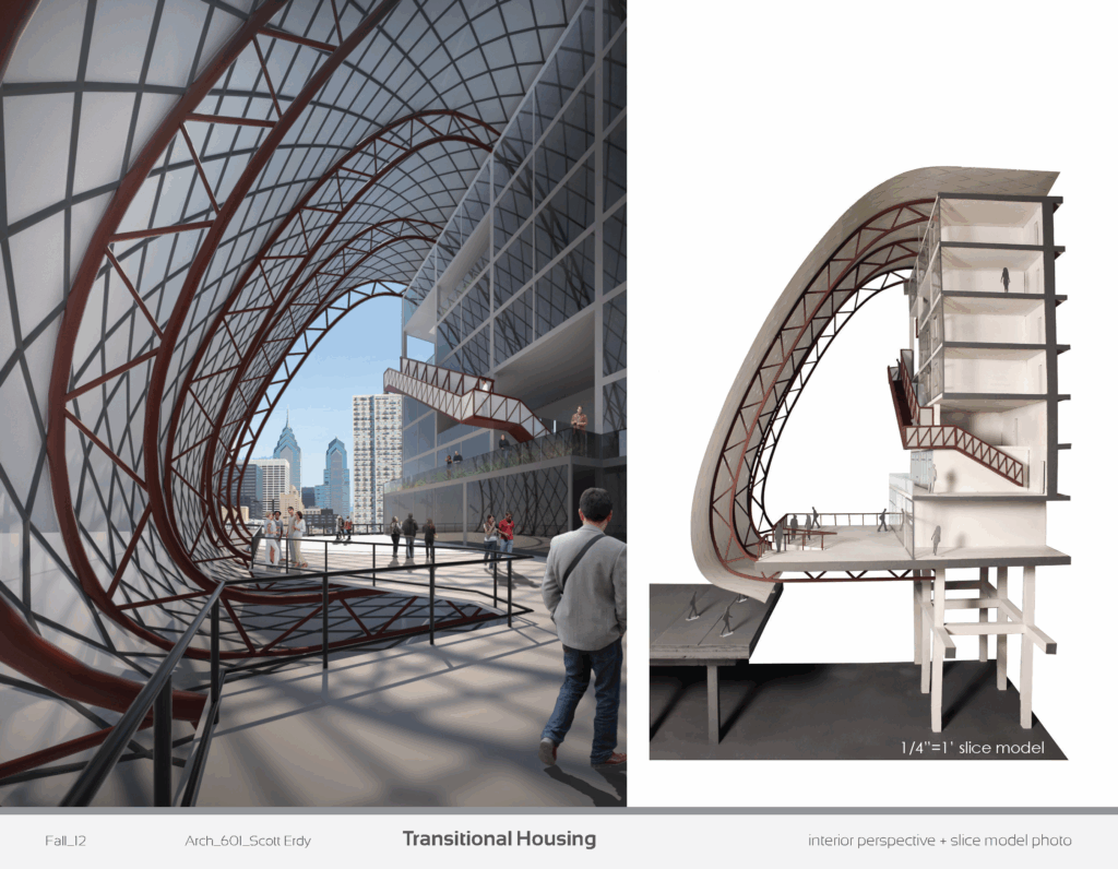 Transitional Stage is a thoughtful design for transitional housing at the intersection of 30th St & Chestnut St in Philadelphia.